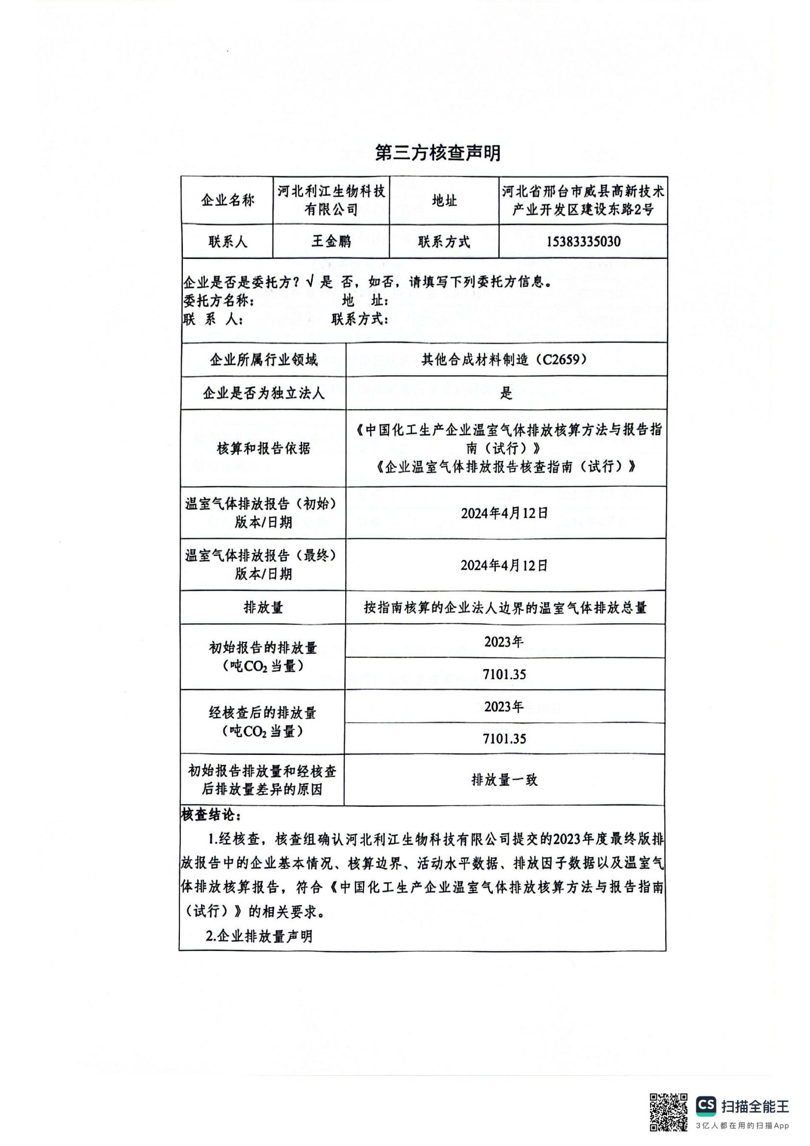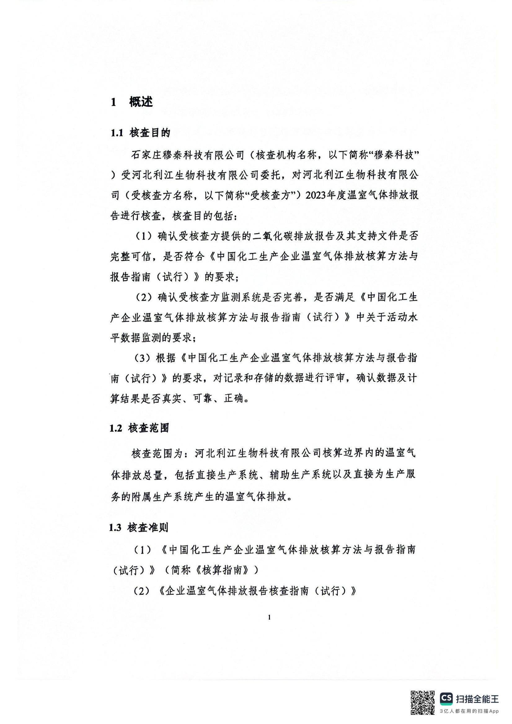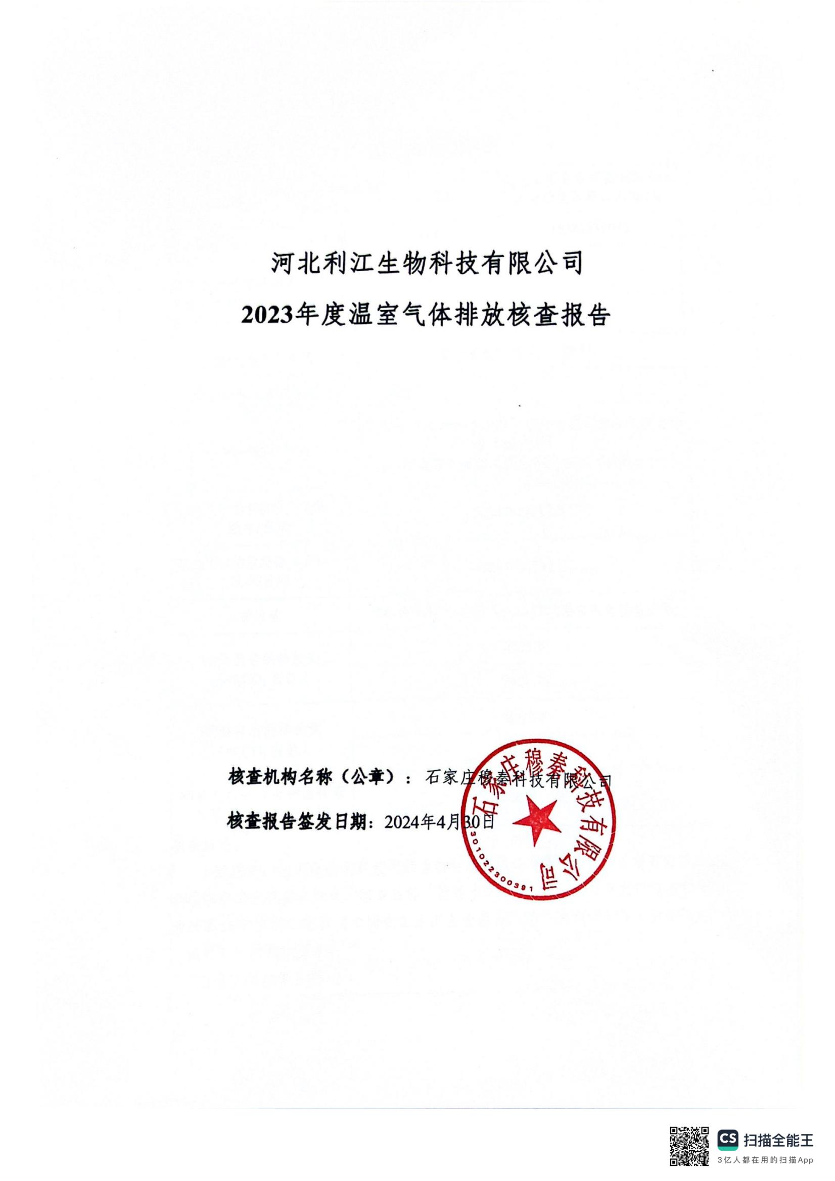 【概要描述】河北利江生物科技有限公司2023年度溫室氣體排放核查報(bào)告