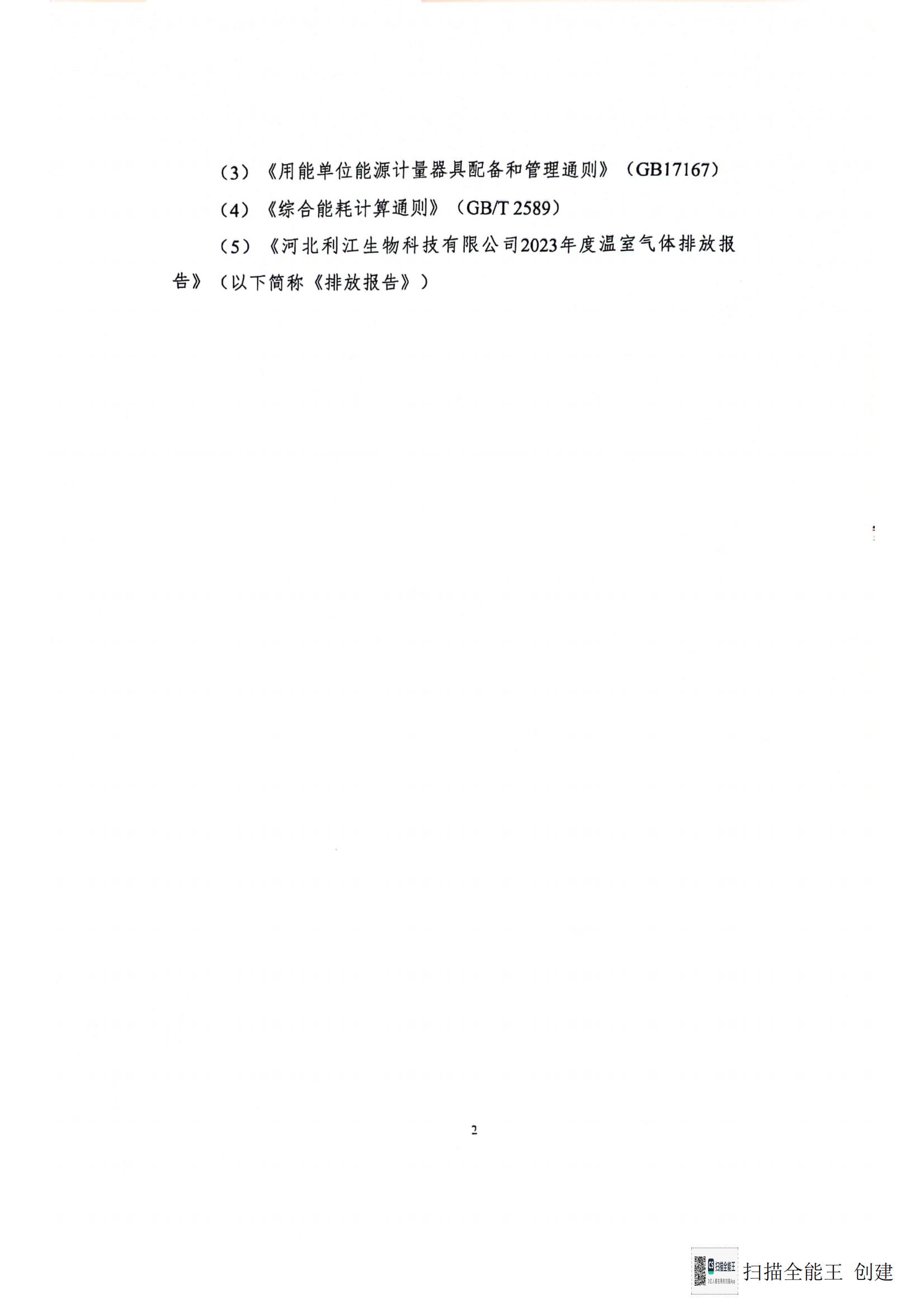 河北利江生物科技有限公司2023年度溫室氣體排放核查報(bào)告
