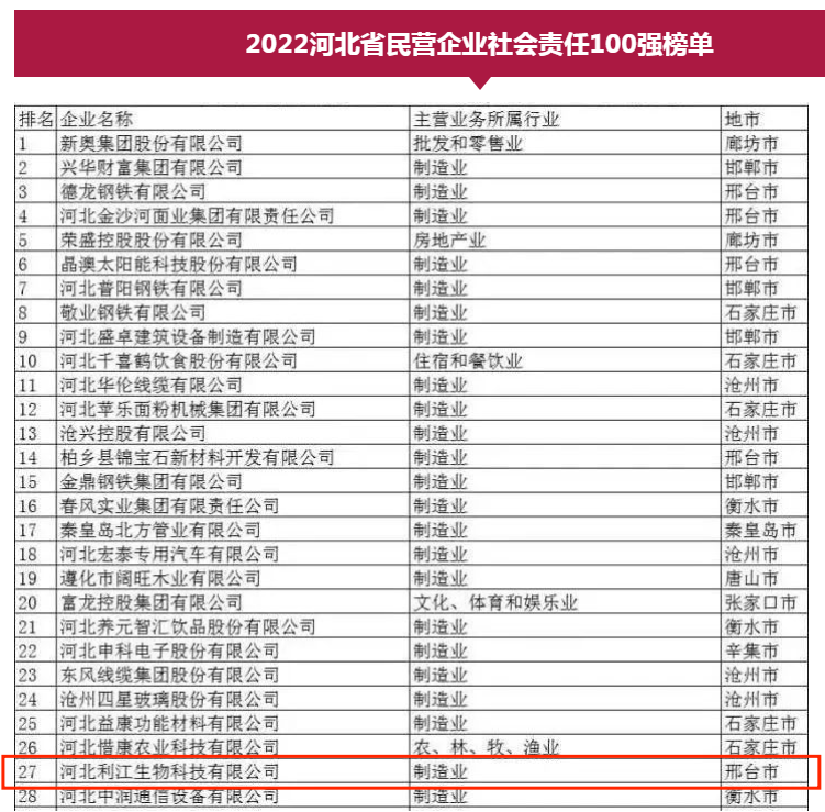 喜報(bào):我司榮登2022河北省民營(yíng)企業(yè)社會(huì)責(zé)任100強(qiáng)榜單